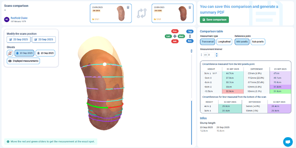 Recently updated, this feature lets you compare two scans, either on skin or over a liner.